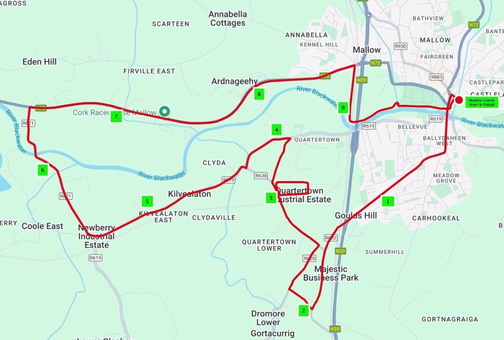 The race begins in the scenic grounds of Mallow Castle, the same starting location as the past three years. Note race start time this year is 10:30am. The first two miles remain unchanged from previous editions.